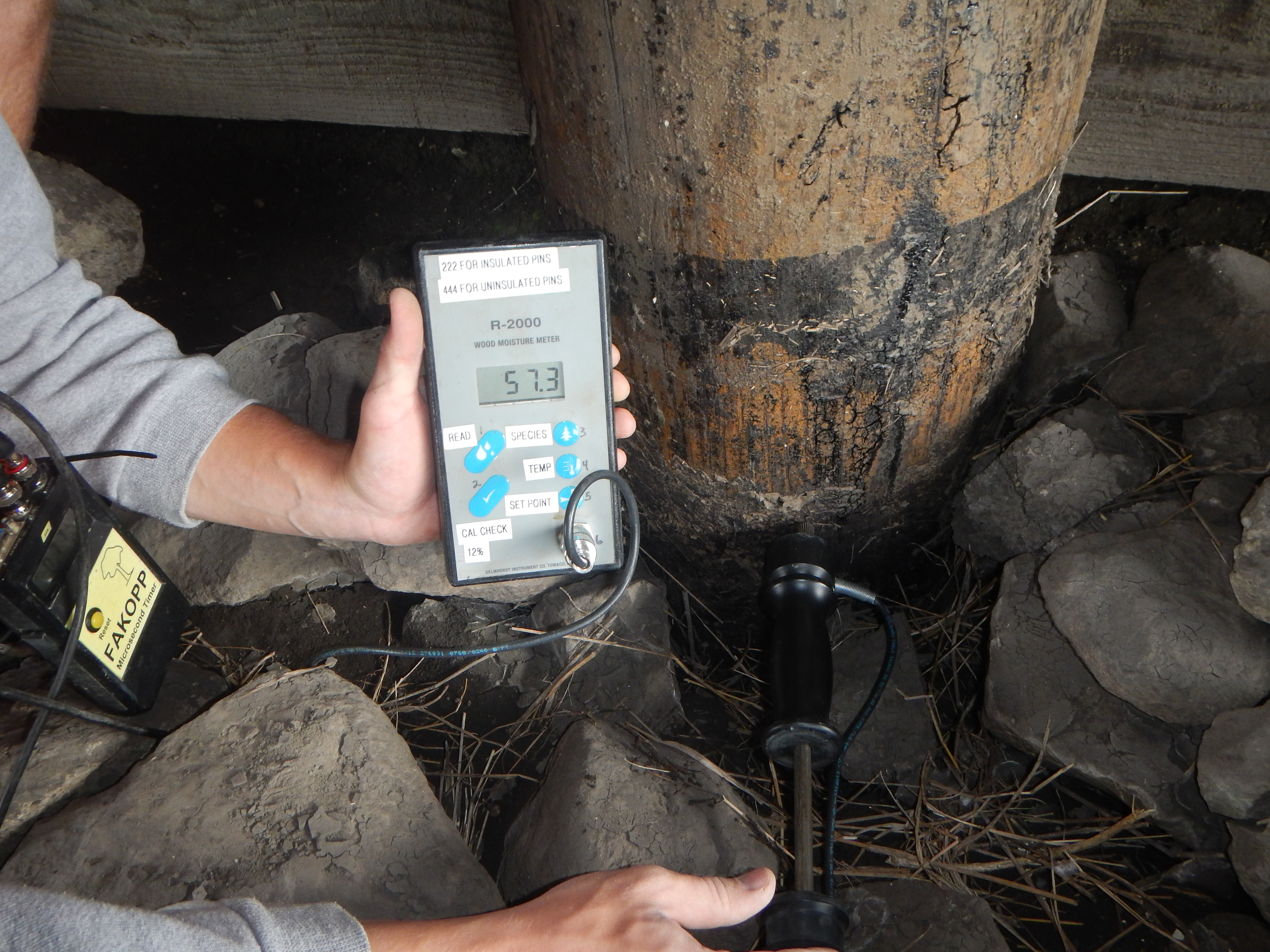 The most troublesome area of decay on a timber bridge are in the pilings, which usually have contact with the water. The drying and wetting of the water causes rot to form.