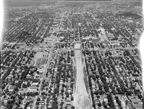 While this exhibit focuses on the Minneapolis interstate, Ernest Lloyd (a retired MnDOT employee who wrote a pioneering doctoral dissertation upon which the exhibit is based) says it’s not unique. “If you map the locations of African American neighborhoods in any large or medium-sized city in the United States, a freeway runs through it or along the edge of it. This is true not only in the Twin Cities, but in L.A., Miami, New Orleans, Syracuse, Atlanta, and on and on and on.”