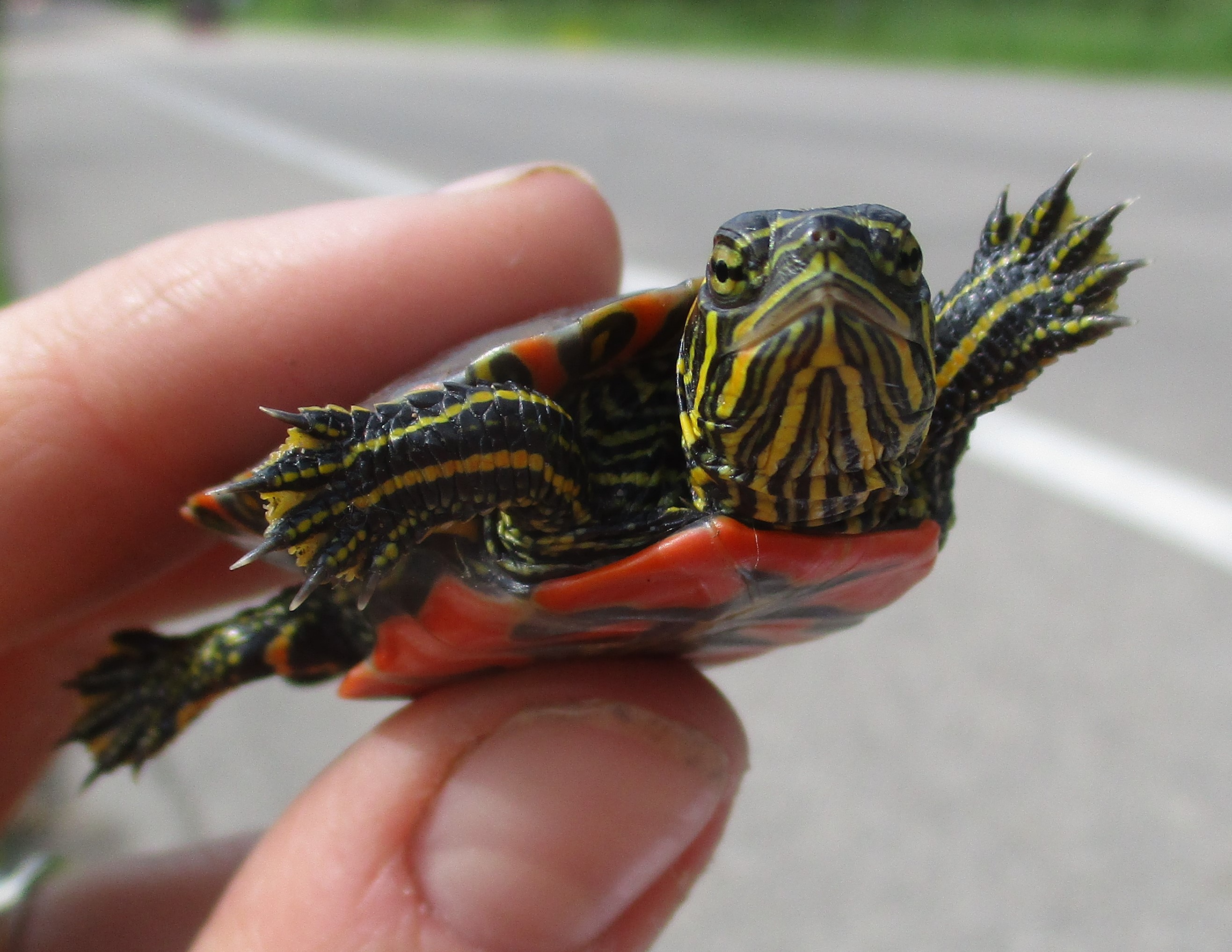 Starting in late spring each year, turtles begin actively looking for mates or nesting sites. They may move across roads since their habitats often extend on both sides.