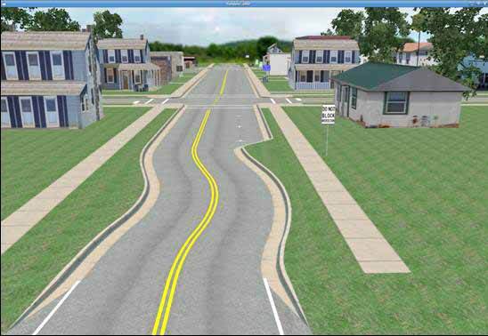 One phase of the study used simulated driving scenes to examine methods of traffic calming (i.e., getting drivers to slow down) in rural towns. The research found that drivers were most impacted by chicanes — extra curves in the road — and the presence of parked cars on the street. An alternative strategy, curb extensions (also called “bulb-outs”), was found to offer only a small potential safety benefit or no benefit at all.